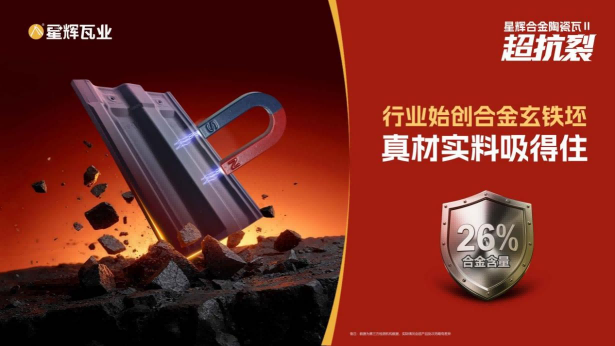 此次,星辉瓦业再次以硬核科技定义行业新纪元。星辉合金陶瓷瓦ll · 超抗裂系列——凭借“行业始创合金玄铁坯”、“1000斤压不裂”、“真材实料吸得住”三大核心特点再次重新划定陶瓷瓦产品的功能边界,树立起难以逾越的技术标杆。