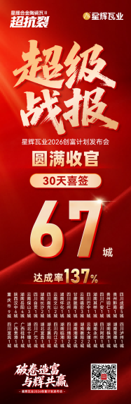 这不仅彰显了品牌的综合实力与深厚底蕴,更是向合作伙伴传递坚定承诺:星辉瓦业矢志构建长期共生、稳健互信、价值共赢的合作新生态。时代机遇已至,发展势能汇聚,诚邀各界伙伴并肩擘画市场新版图,共享未来增长红利!