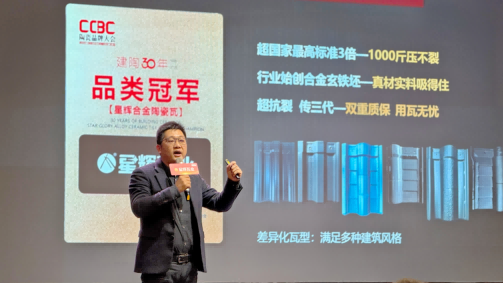 在行业同质化与品质升级并存的市场环境下,星辉瓦业重磅发布“星辉合金陶瓷瓦II 超抗裂”新品,精准契合市场对颜值与实力的双重期待。会上,星辉瓦业产品研发总监张晓征从产品研发的底层逻辑出发,结合终端市场难点,系统阐释了产品在工艺、技术及设计维度的突破性进展——从外观美学升级到合金玄铁坯技术的迭代革新;并对“超抗裂”技术标准进行了体系化解读与场景化赋能,助力深化与会嘉宾对产品价值的认知与理解。