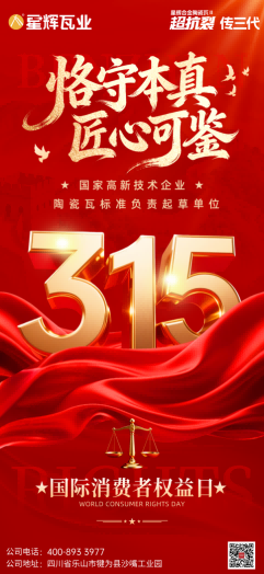 在一年一度的“国际消费者权益日”,诚信与品质再次成为时代强音。作为陶瓷瓦标准负责起草单位,星辉瓦业更能感受到肩上的千钧之责。