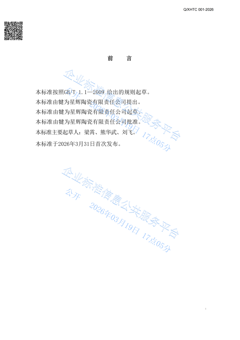2026年3月20日,星辉瓦业烧结瓦企业标准正式发布!